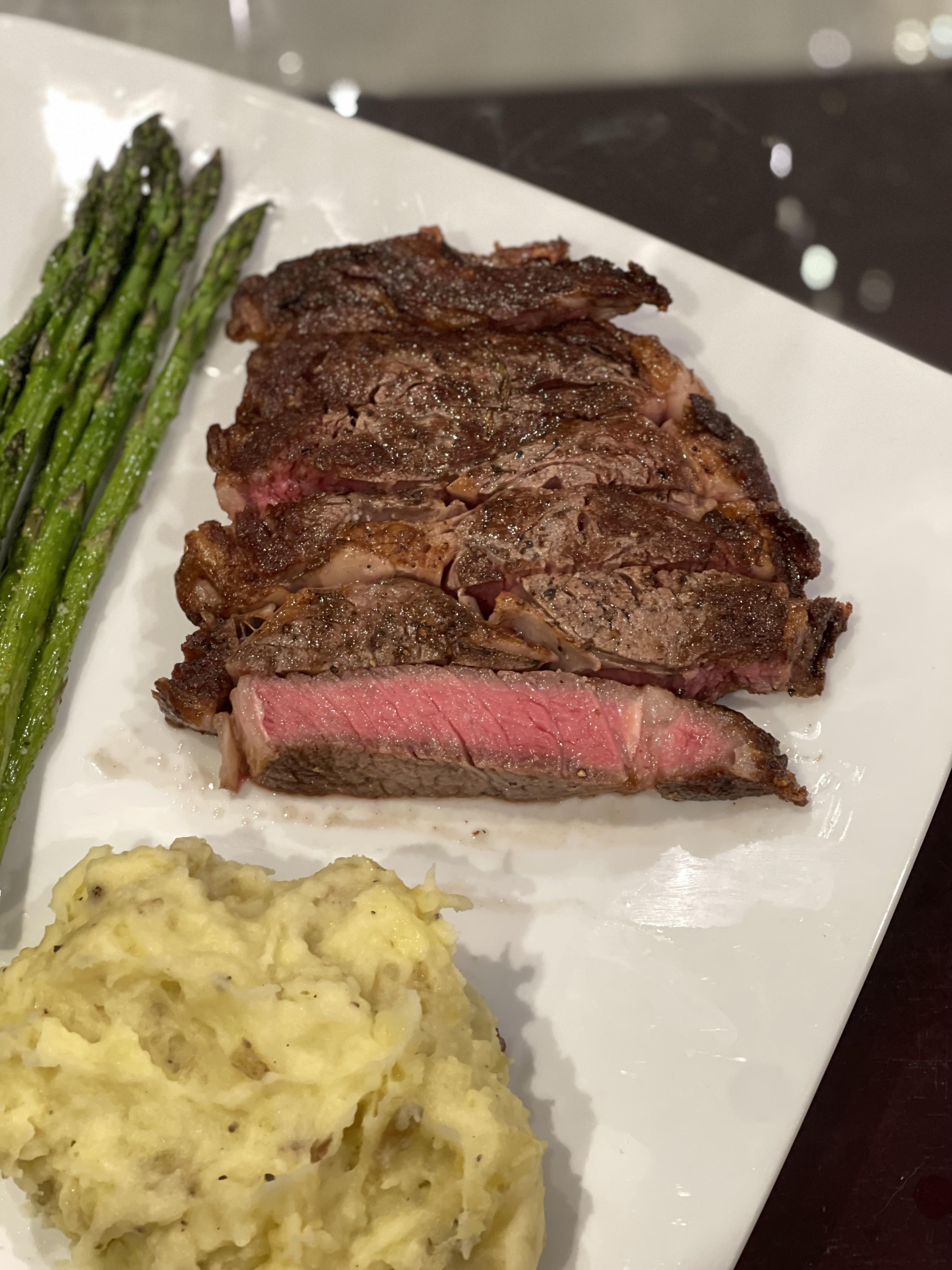Ribeye. 1 hour @ 129. Seared in butter on cast iron.